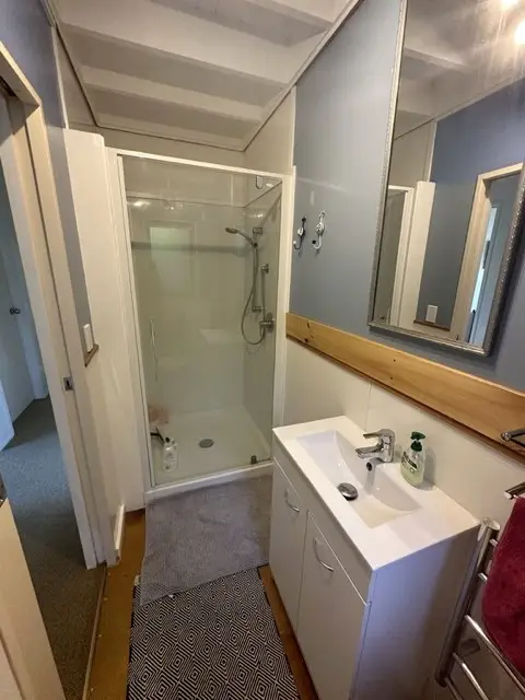 Modern, sunny, decks and bush/inner harbour views. Tranquil living area/kitchen/deck with BBQ. Downstairs three bedrooms . 2x Queen beds, 2x single beds. Open onto lower deck. Toilet upstairs. Shower + toilet downstairs, Sleeps 6. Five min drive/15 mins walk to Raglan town and wharf. Short walk to harbour swimming beach. Fifteen mins drive to Manu Bay. Small/medium size dogs welcome – please discuss as no outdoor fenced area. Unlimited data (fibre). Gas hot water. Heat Pump. North Facing.