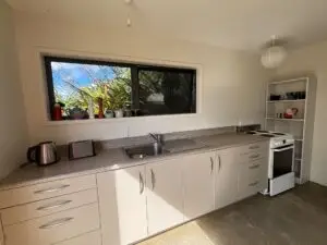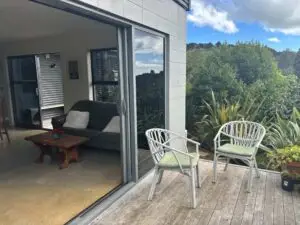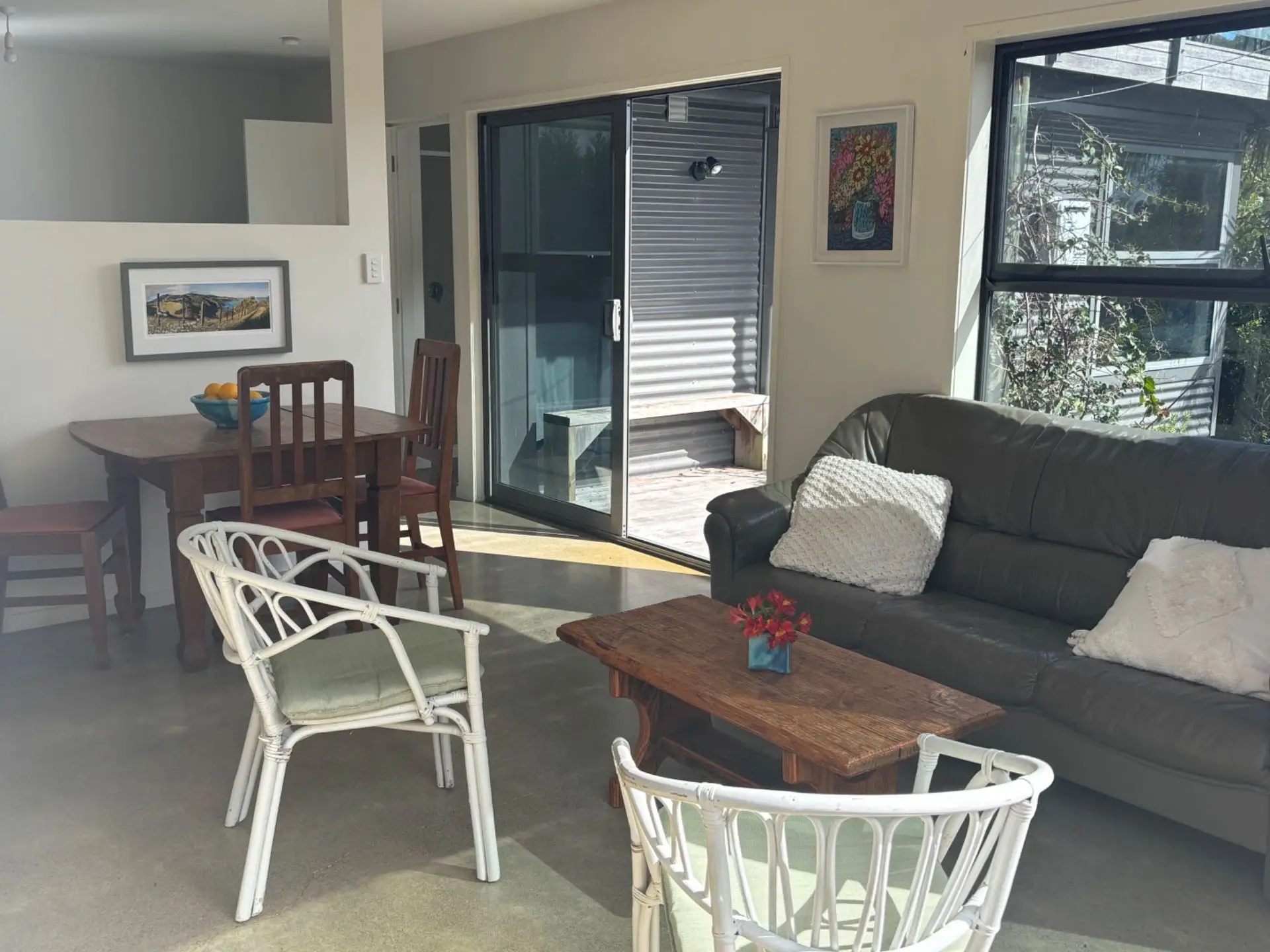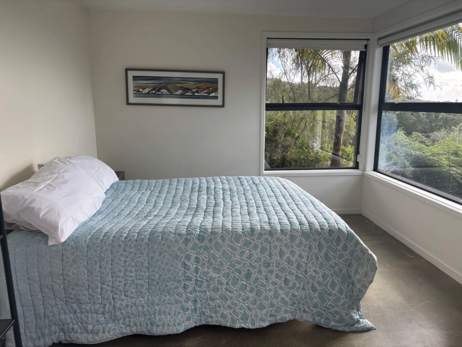 Beautiful bush surrounds with sea views and a clear mountain stream. Bush walk directly to Ngaranui Surf Beach. 4 kms (on bus route) from Manu Bay, location of the World Surf Championships. On bus route to both Manu Bay and Raglan township.