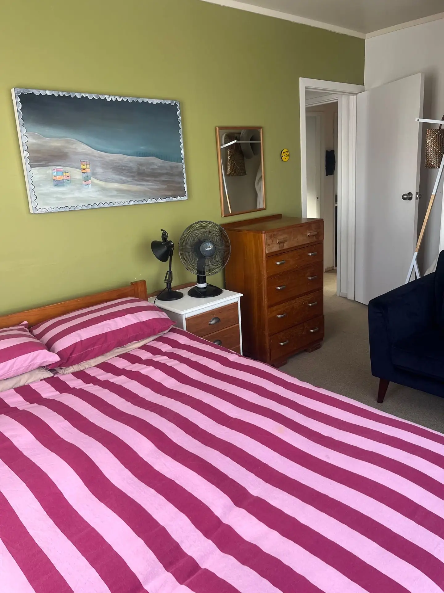 Three rooms up for grabs in my Raglan home — perfect for a family or a small crew of good humans here for the surf comp. I’ll be around (working during the day), but the house is super easy and relaxed — come and go, make yourselves at home, no weird vibes. There’s one queen room, one double, and one single. Plus a BBQ and two outdoor hangout spots for post-surf snacks, drinks, and general lounging. I’ve also got a dog and a cat — both excellent company. Walking distance to town and only 10 minutes drive to Manu Bay.