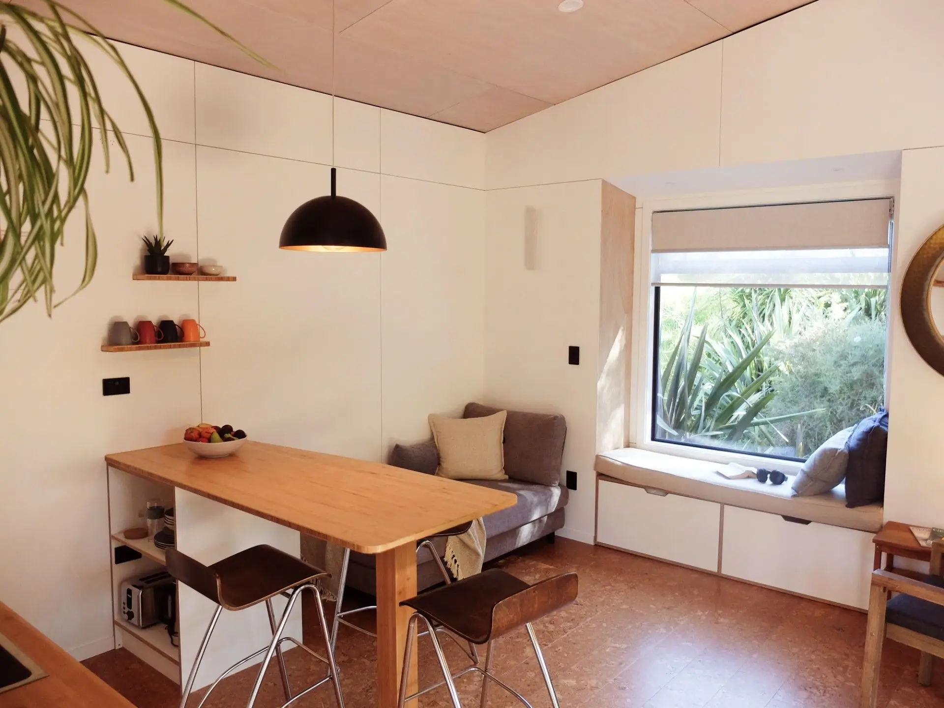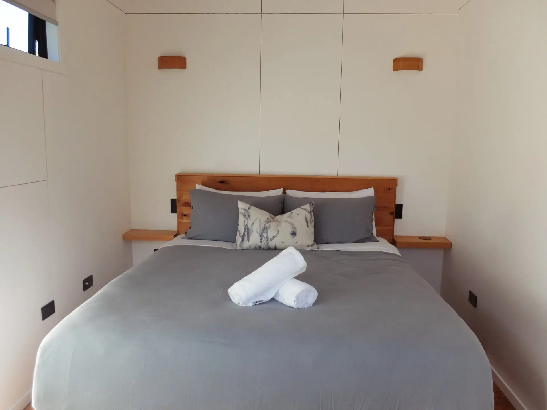 This cosy modern cottage is nestled amongst native trees and birdlife. Just steps from the scenic Kaitoke Walkway and close to town, this modern one-bedroom abode combines cosy comfort with a light footprint. The cottage offers an open living area, separate bedroom, bathroom and a private patio-area, all crafted with sustainable materials.