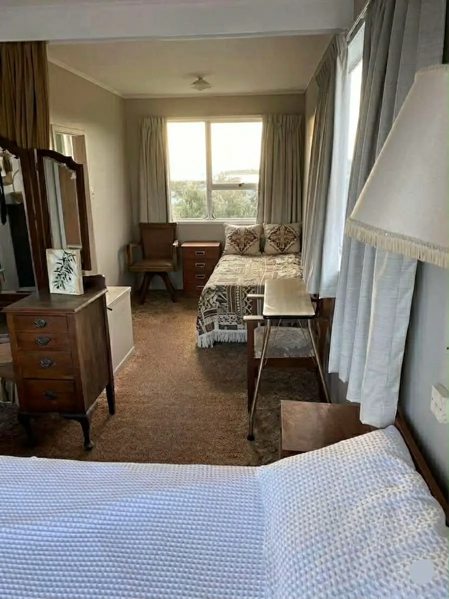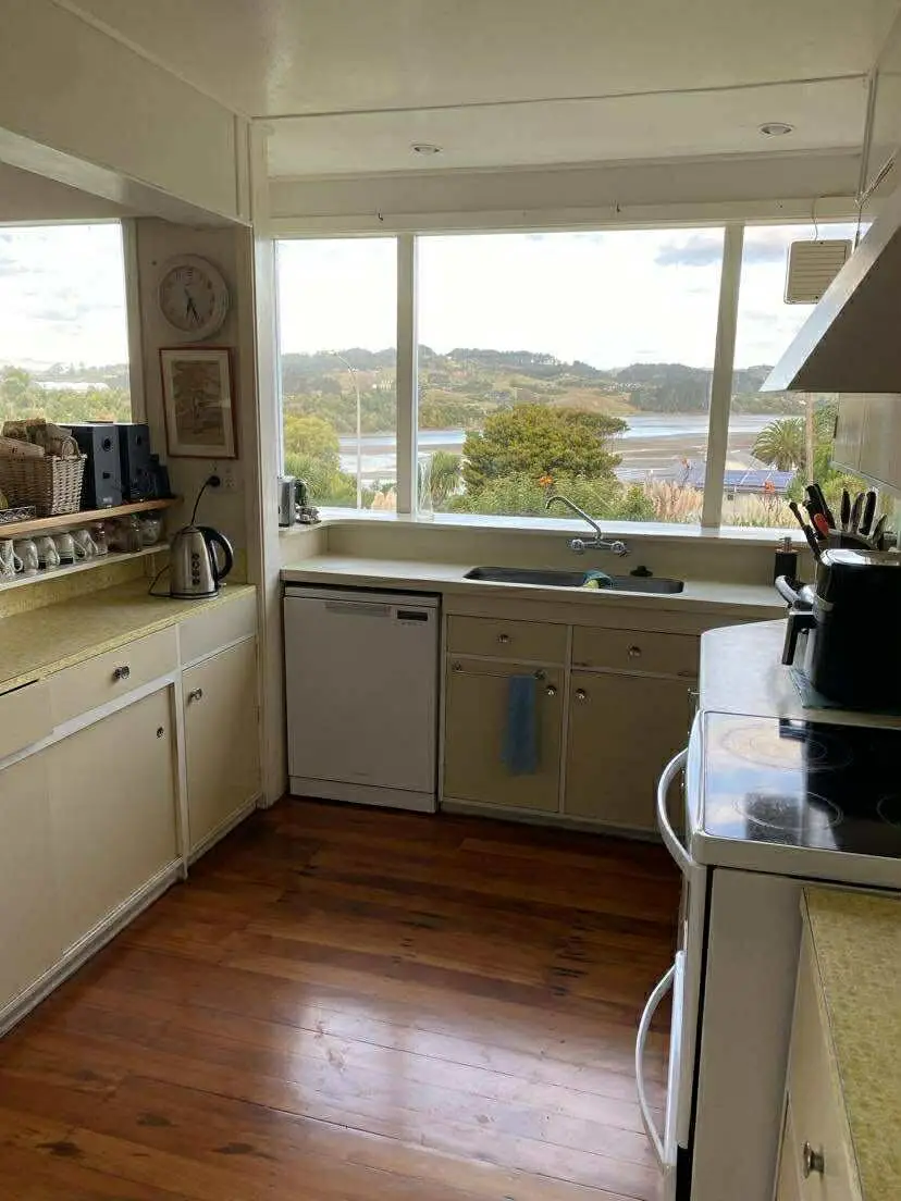 Character home set on a hill overlooking estuary, harbour & raglan bar. Two storey home sleeps 9. Lots of lawn & plenty of space. Situated beach side of one lane bridge. Walking distance to beach, town, cafe & restaurants. 7 minute drive to the famous Manu Bay surf beach.