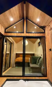 Get away from it all when you stay in this stunning cabin ‘The beach’ built by Raglan Tiny Homes (2023). Surrounded by trees and native bush, its a perfect retreat after a day in the surf, at the beach, or checking out the local cafes and shops. Relax on the covered patio area, enjoy the beautiful surrounds, the sounds of birds and the stream. At night, stargaze from the deck or the submerged outdoor bath. The wood burner in the cabin will keep you warm and cosy. Snuggle up in a double bed, and enjoy the sound of the stream and birds in the morning. Everything you need for cooking with mains power a fridge/freeze unit, combination microwave and convection/air frier, kettle, coffee plunger and a double gas hob. Two showers, one inside the other outside, compostable toilet and also an outside bath. Unlimited Wifi accessible. Parking is up by the main house at 50c, with a short walk 30m across the garden away from the main houses then down with a grassy slope, solar lamp lit path, which is fairly steep 1:15 to 1:20 gradient, so not ideal for those that may find the slope struggle, could also be slippy when the grass is wet. At the bottom of this is the tiny home with a view of the natural bush beyond. A little used footpath at the back of this area gives you access to a 30min walking track through the bush reserve to eventually join the Bryant Memorial Scenic Reserve-Ngarunui track leading down to Ngarunui beach.