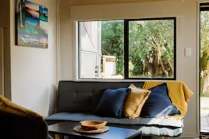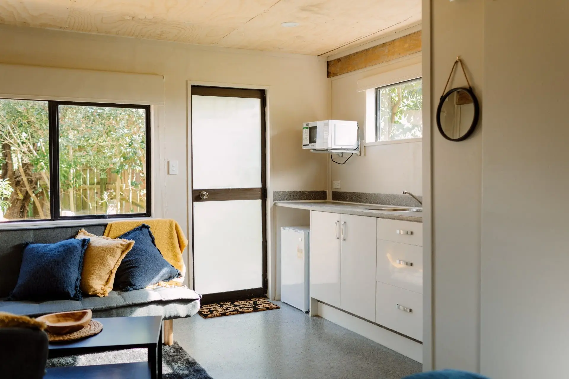 Tangelo Tree is nestled below Mount Karioi- only 4 kms from Raglan – 2 minutes’ drive to Ngarunui Beach- and a few minutes from World Famous surfing at Manu Bay.- Tangelo Tree is surrounded by forest – with plenty of bird life== Has 1 double bed – sleeps 2 and a sofa -opens out sleeping 1 adult – or 2 children – Extra adult add $25 a Nite – Children free -Also guest get a free coffee voucher at Wharf Espresso -on Veranda Raglan Club== Studio is open plan ==free use of surfboards , boogie boards -and free lessons on request==We also have a neat black folder with all details inside =Apart from the $125 a Nite fee – We have a professional cleaner , cleans before and after – this is a one of extra fee -of ;- $55.00== only .== Has kitchen, bathroom – microwave, fridge – coffee, tea , milk water supplied =on request is BBQ – Electric fry pan, and Toastie machine- = Hot water, towels -all linen heater, smoke alarm, dishes, cutlery – all supplied – even toilet paper – !!== If planning to book – Any queries very welcome — has a cancellation clause – 10 days before booking- full refund – 7days 50% – and 6 days = Nill Refund